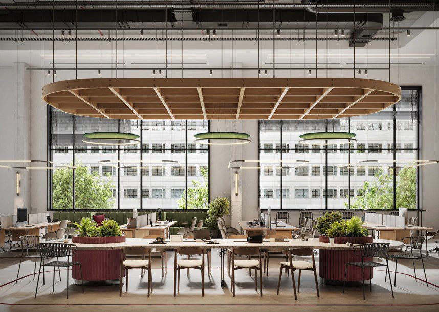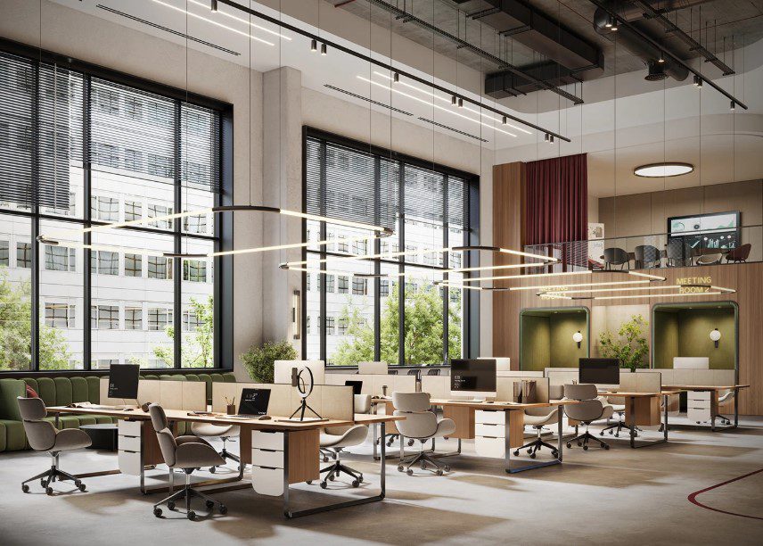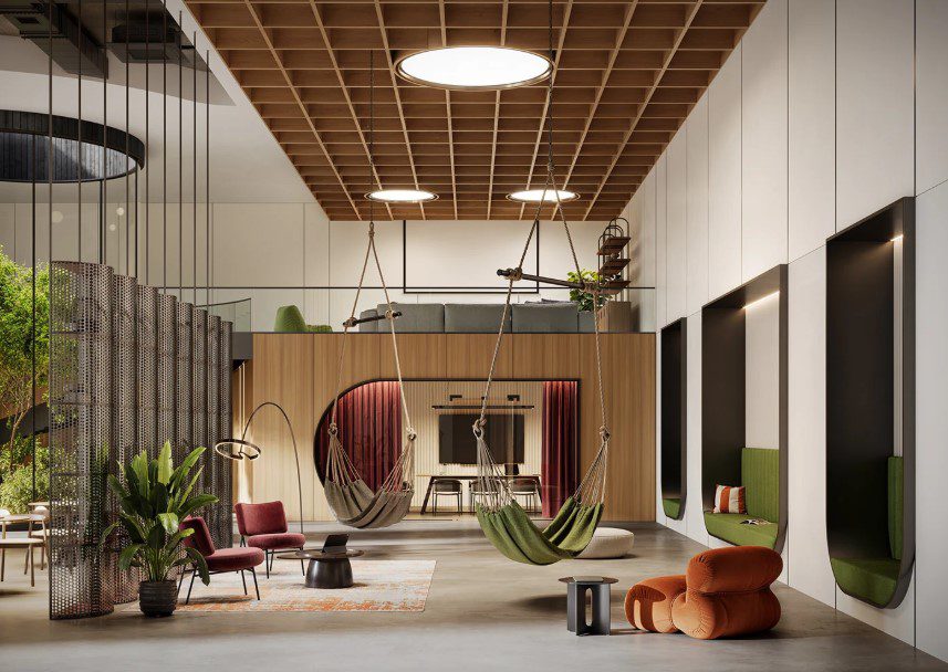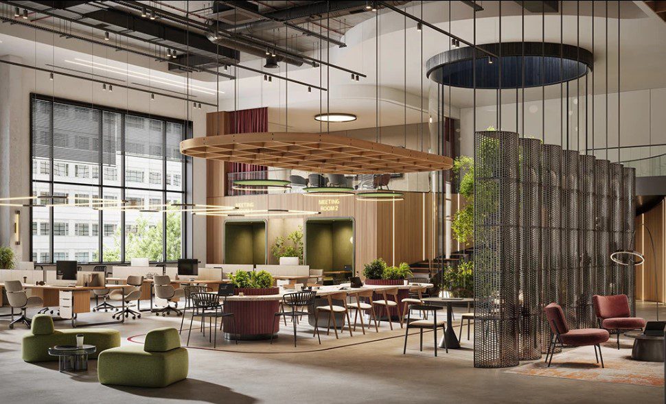 Không gian hiện đại ưu tiên ánh sáng tự nhiên, sử dụng vật liệu thân thiện môi trường, kết hợp các khu vực nghỉ ngơi và trao đổi linh hoạt. Các sản phẩm nội thất cũng mang tính công thái học cao – nghĩa là được thiết kế để bảo vệ sức khỏe người sử dụng, giảm đau lưng, cổ vai gáy và tạo sự thoải mái khi ngồi lâu.