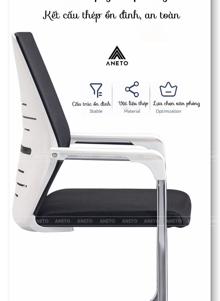 Với thiết kế tối giản, màu sắc trang nhã (đen – trắng hiện đại), ghế chân quỳ ANETO dễ dàng hòa hợp với nhiều phong cách nội thất khác nhau: từ văn phòng hiện đại, tối giản đến phòng họp sang trọng. Sản phẩm có thể được sử dụng linh hoạt cho nhiều mục đích: