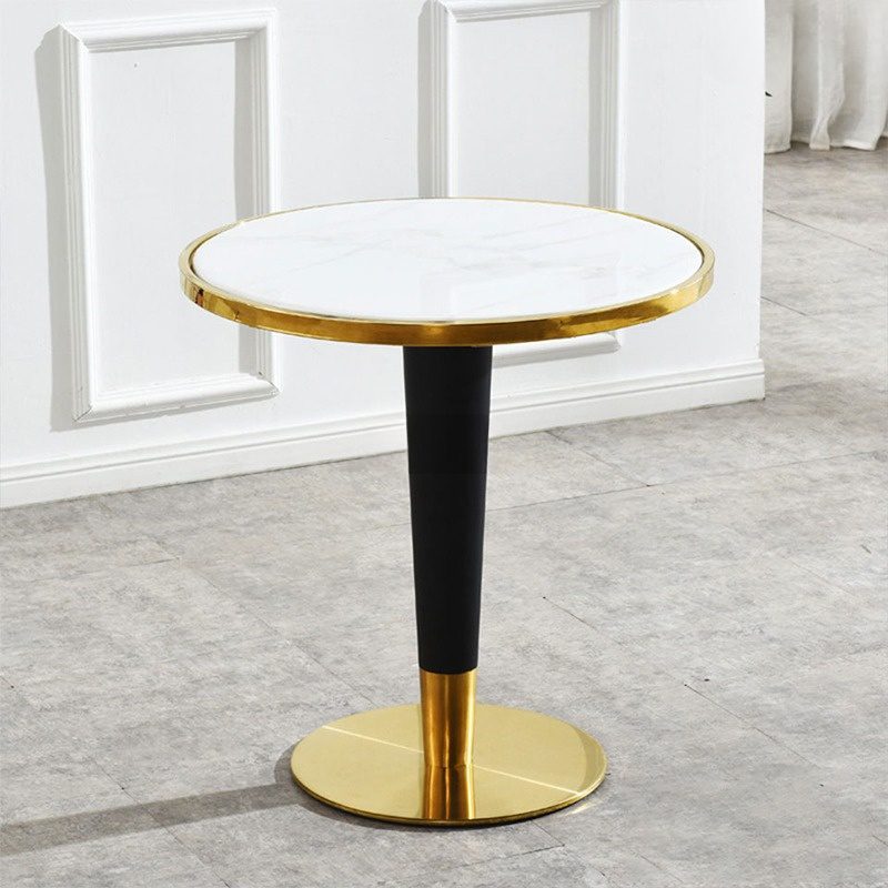 Trụ bàn tròn liền chân, được làm từ thép không gỉ mạ vàng cao cấp. Trụ này được gắn liền với chân bàn tròn, tạo nên sự vững chắc và ổn định đáng kinh ngạc.