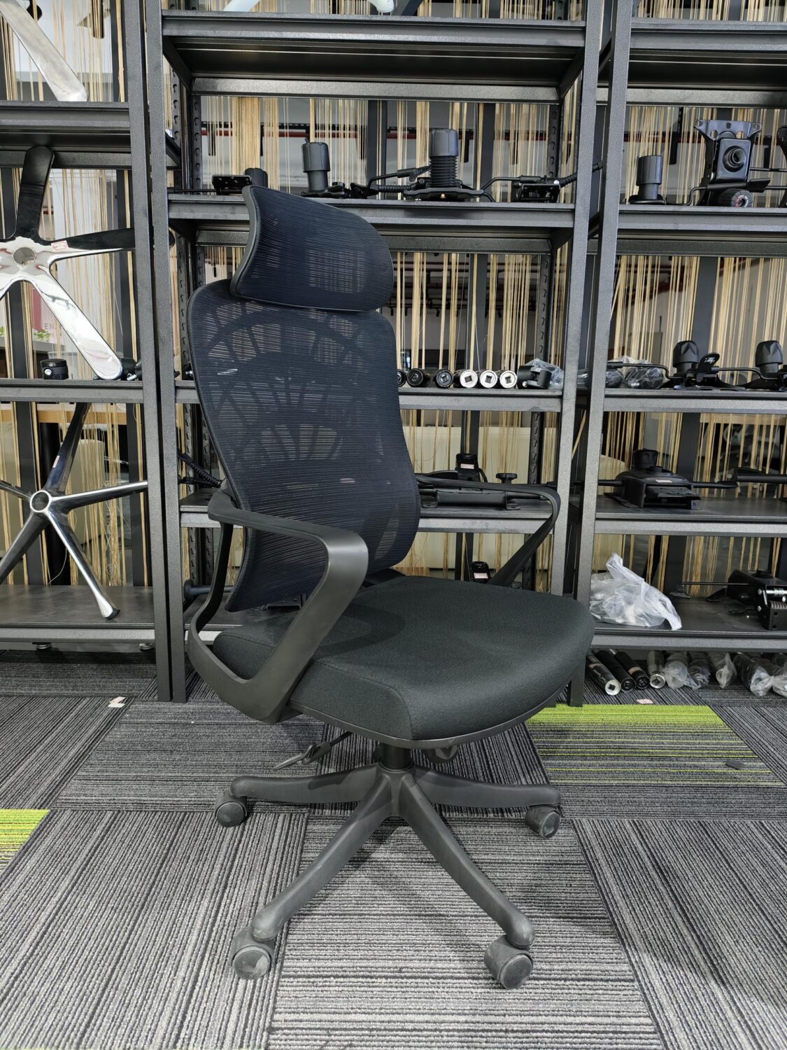 • Chất liệu: Ghế lưới có tựa đầu, chân xoay nhựa, đệm mút lưới, piston thủy lực có gật gù